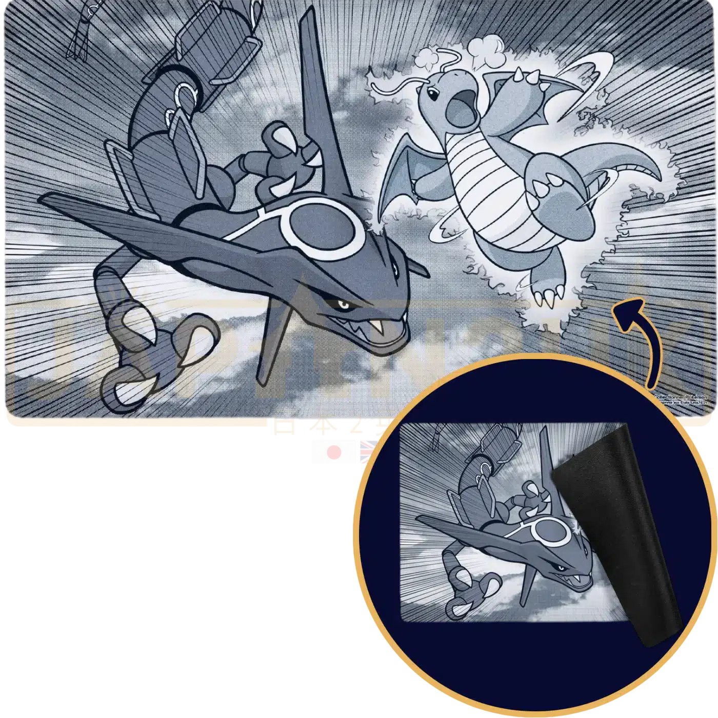 Préparez-vous à une immersion totale avec le Playmat Rayquaza & Dracolosse (Dragonite), une exclusivité mondiale du Pokémon Center. Cette illustration épique met en scène deux des créatures les plus puissantes de l’univers Pokémon : Rayquaza, le gardien légendaire de la couche d’ozone, et Dracolosse, le dragon emblématique de la première génération. Ce tapis de jeu n’est pas qu’un simple accessoire, c’est une véritable œuvre d’art qui apporte une aura de domination et de prestige à votre zone de combat.